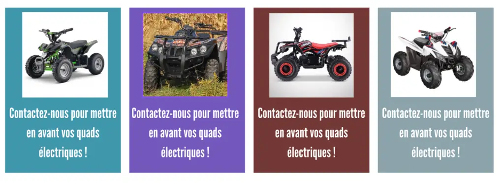 Vous êtes à la recherche du quad électrique idéal pour vous ou votre enfant ? Découvrez nos comparatifs des meilleurs quads, classés par tranche d’âge, et des meilleurs revendeurs. Trouvez le compagnon de loisirs parfait pour des escapades tout-terrain inoubliables. Pour vous aider, nous avons passé en revue les principales marques et choisis leurs meilleurs modèles, en évaluant leurs performances, leur sécurité et leur rapport qualité-prix.