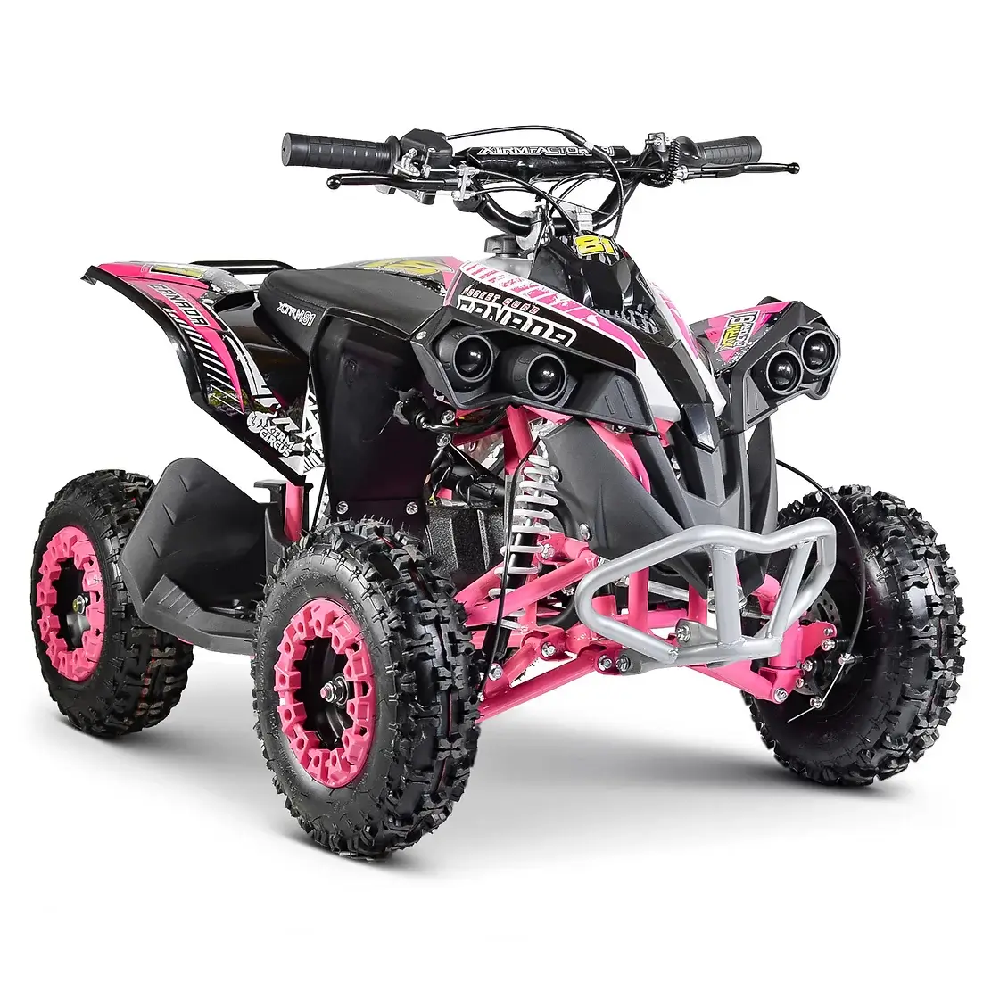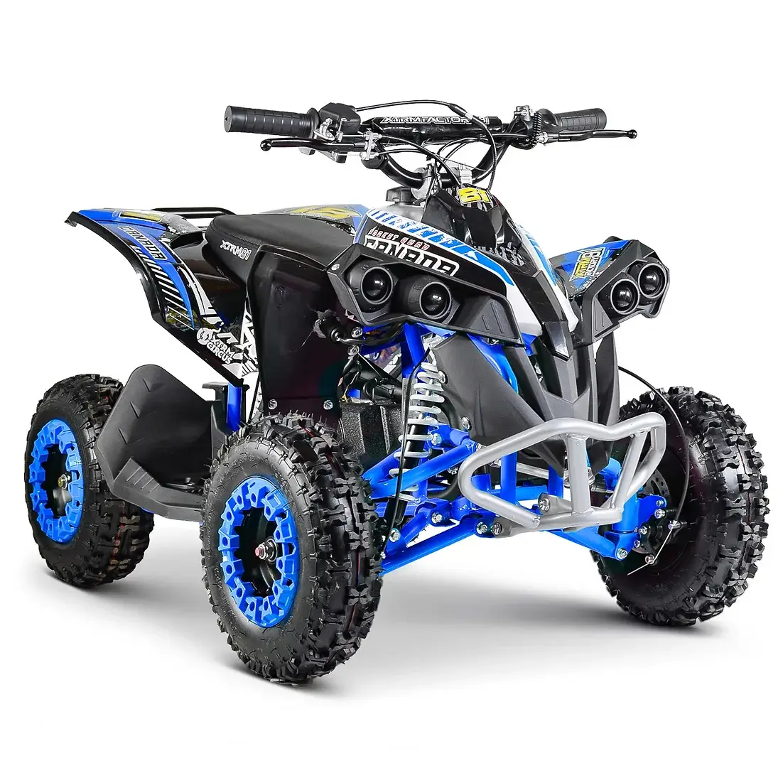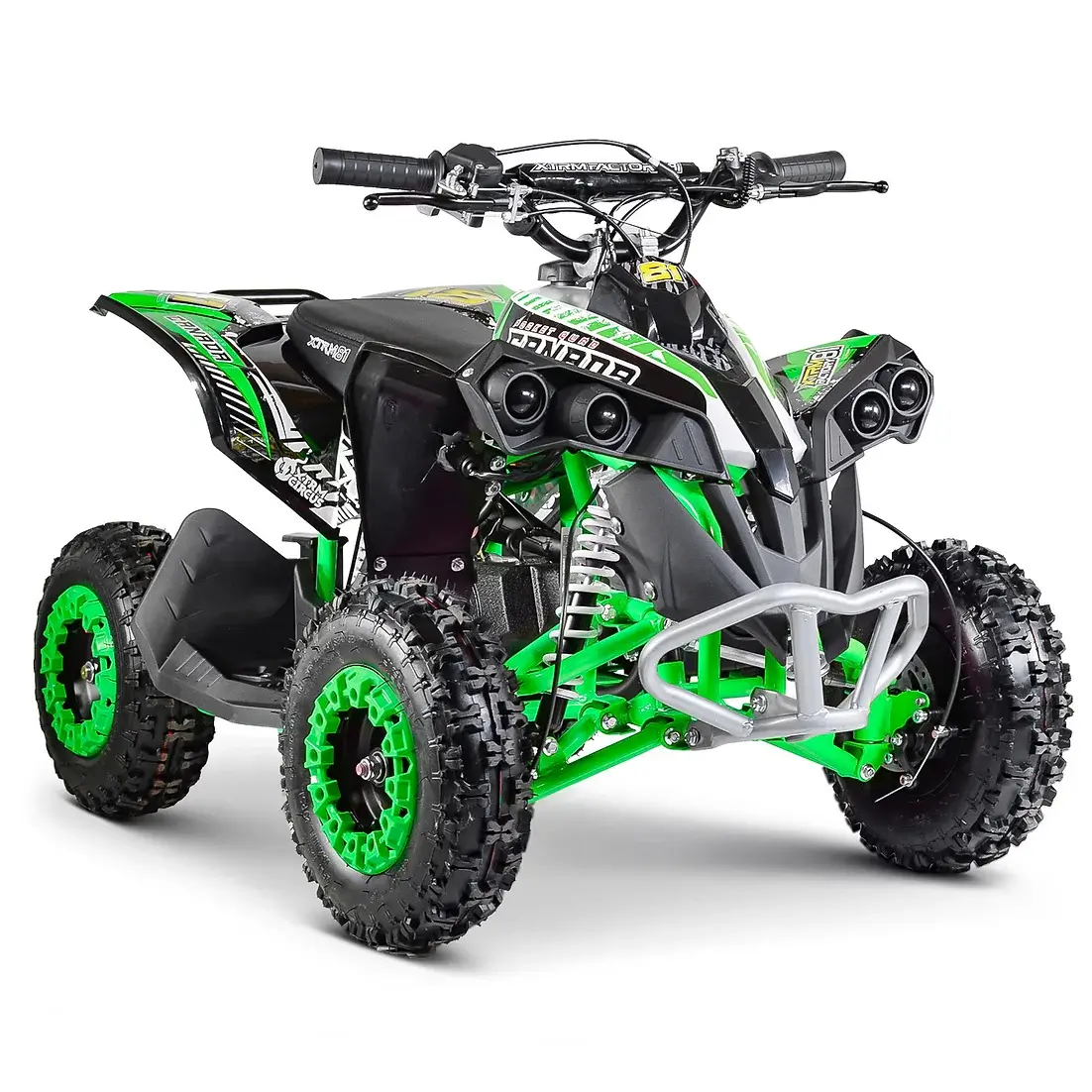 Pour finir, le moteur de ce quad électrique lui procure une très bonne réactivité et une grande puissance. Alliée à des roues de six pouces, la puissance du moteur lui procure aussi une très bonne adhérence et une traction importante.