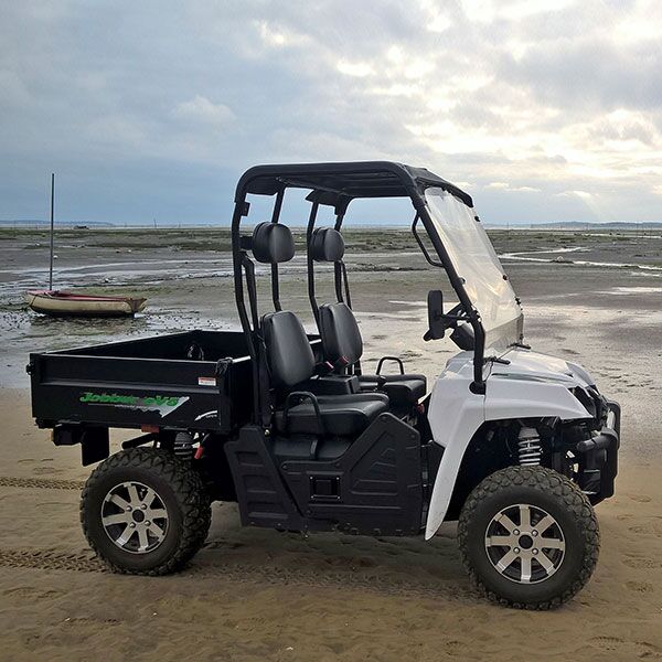 En dehors de son moteur puissant, le fonctionnement du buggy Jobber EV5 repose sur une transmission à deux roues motrices. Elle assure une traction fiable, même dans les conditions les plus exigeantes, qui plus avec les pneumatiques de 12 pouces qui équipent le quad Jobber EV5.