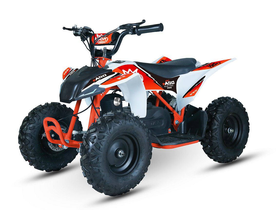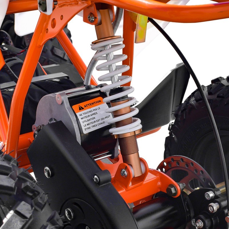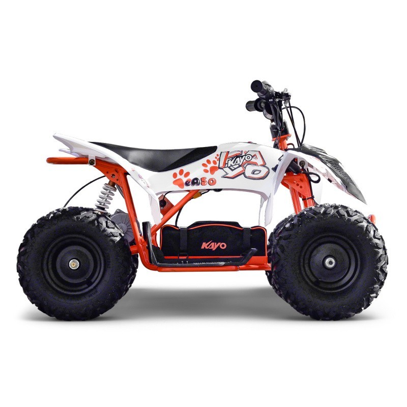 À l’instar du Cyclone FX, le Kayo EA50 500 W est un pocket quad pour les enfants âgés de 4 à 8 ans. Il est conçu spécialement pour une initiation sécurisée en tout-terrain léger comme les jardins ou les chemins.