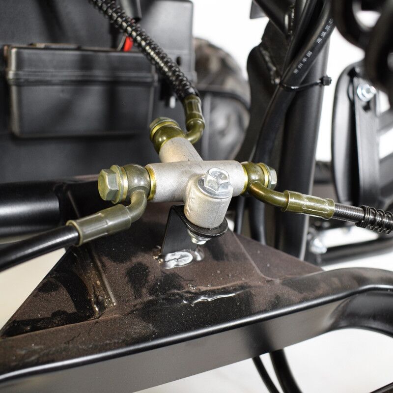 Soyez rassuré pour la sécurité des freins. En effet, notre modèle est équipé de freins hydrauliques à disque à l’avant et à l’arrière, d’un frein de stationnement, de même que de feux avant et arrière avec feu stop selon les versions choisies.