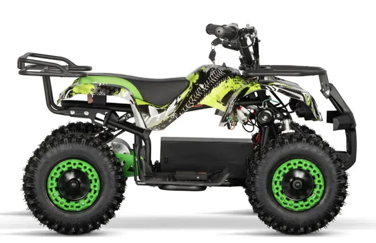 Avec ses couleurs éclatantes et son style graffiti audacieux, ce quad électrique pour enfant ne passe pas inaperçu. Disponible en plusieurs coloris vibrants – rouge, bleu, vert et orange – le Torino Graffiti arbore un look urban à l’instar du quad électrique pour enfant Apollo Fox 1000 qui plaira autant aux enfants qu’aux adolescents. Sa carrosserie robuste et son design moderne en font un compagnon idéal pour les aventuriers en herbe de 5 à 10 ans.